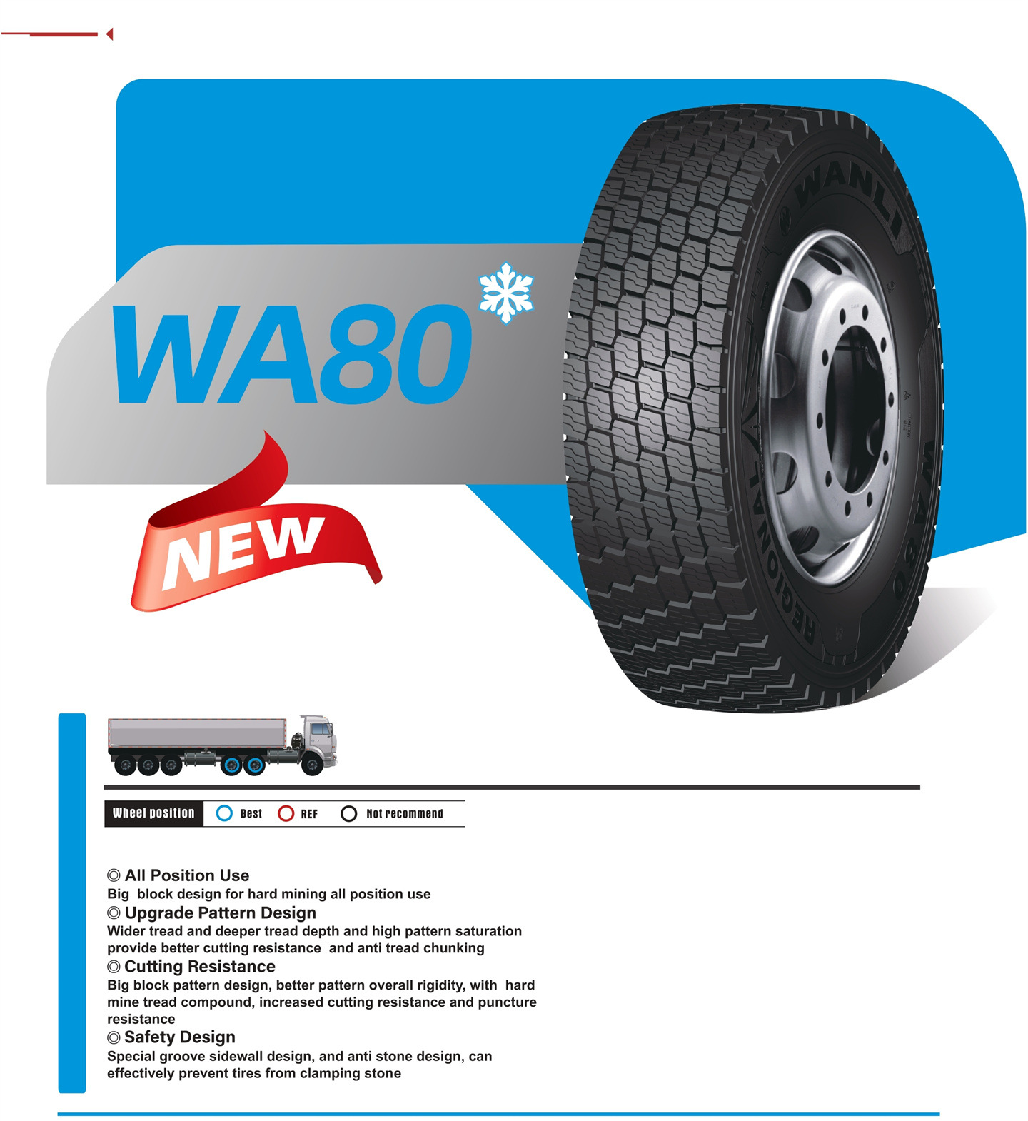 Special groove sidewall design, and anti stone design, can effectively prevent tires from clamping stone
