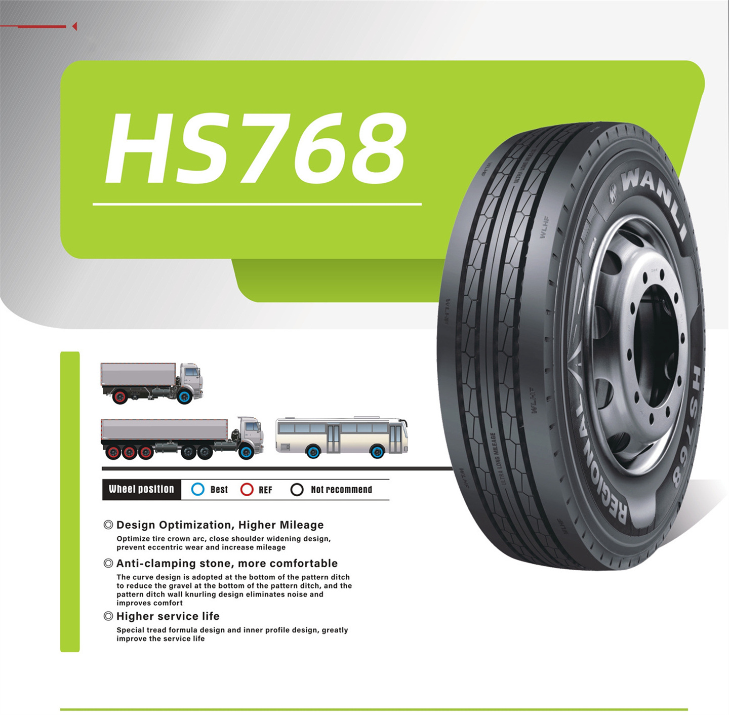 Optimize tire crown arc,close shoulder widening dosign,prevent eccentric wearand increase mileage