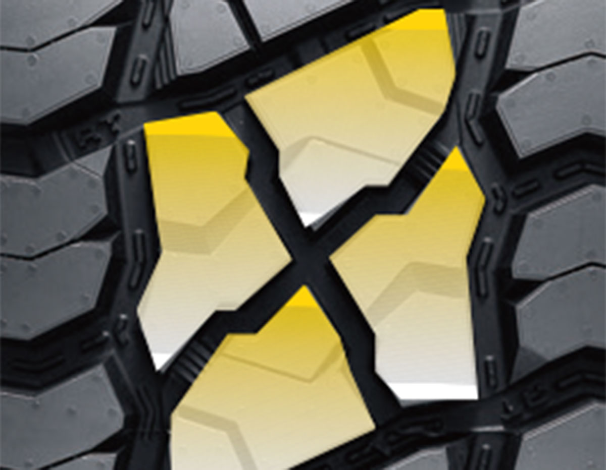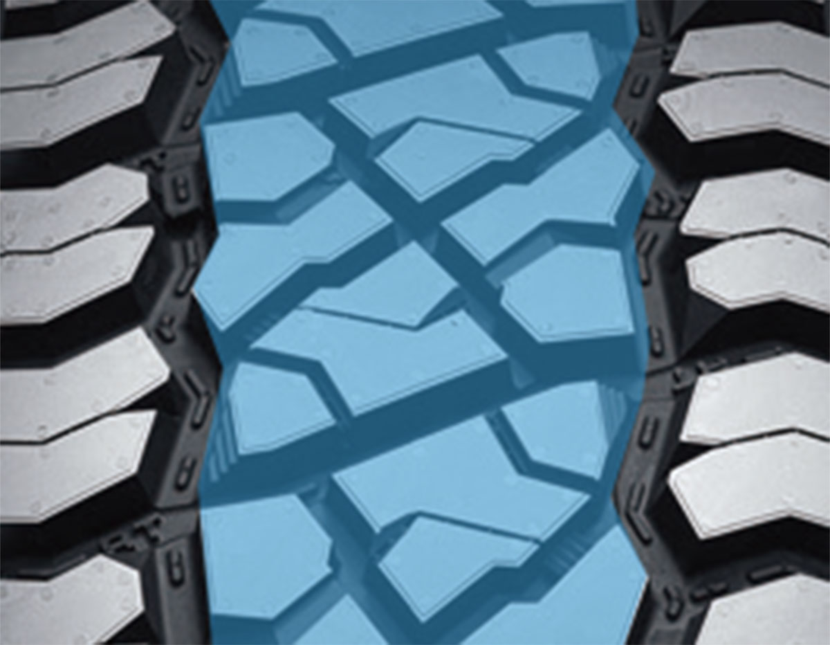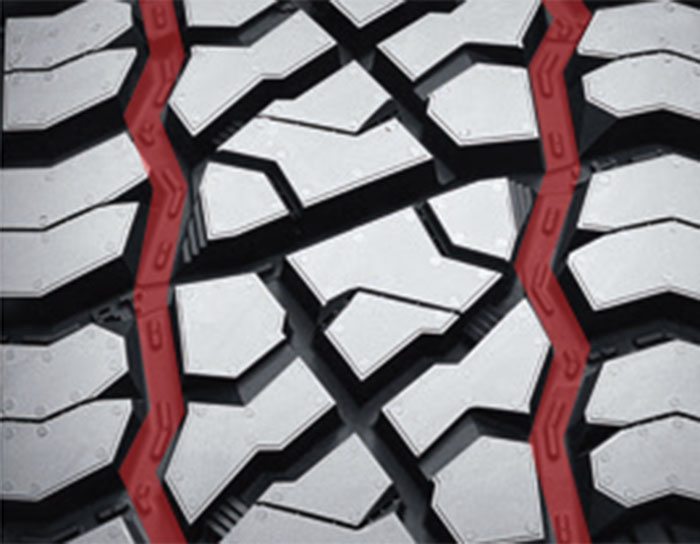 獨(dú)特 雙寬大、曲折自潔式主溝,濕地排水能力優(yōu)異;搭配開(kāi)放式 胎肩花紋塊設(shè)計(jì),提供強(qiáng)勁的牽引力和橫向穩(wěn)定性,在泥濘路面和沙地路面具有更強(qiáng)抓地力。